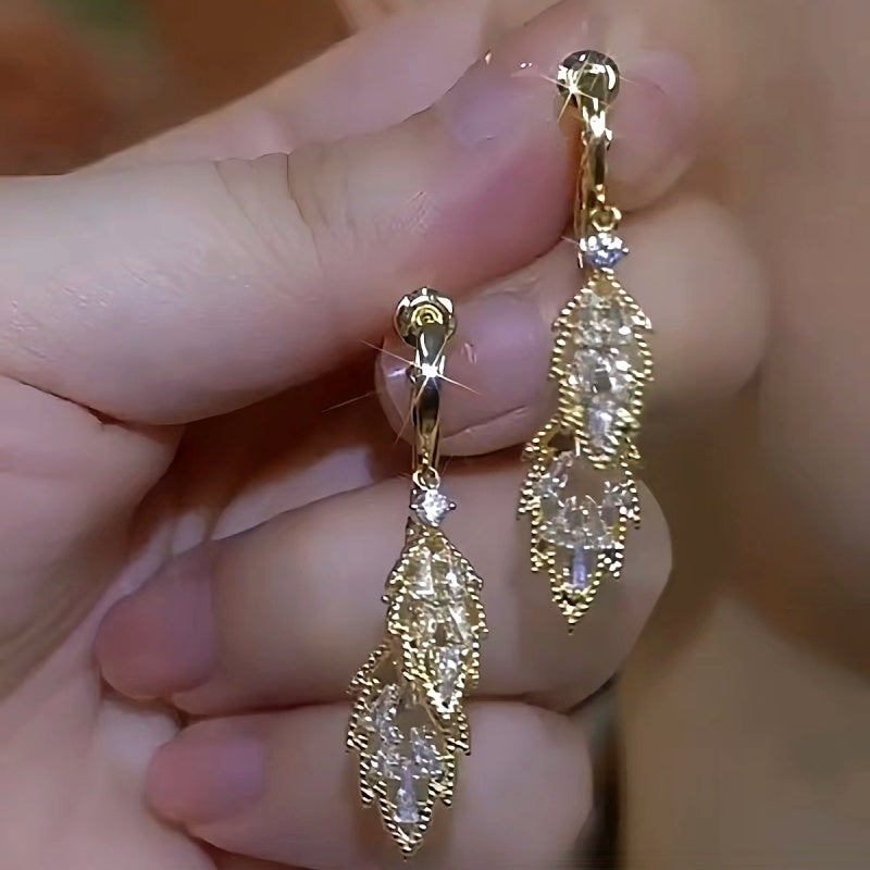 14K Gold-Plated Elegant Zircon Leaf Earrings