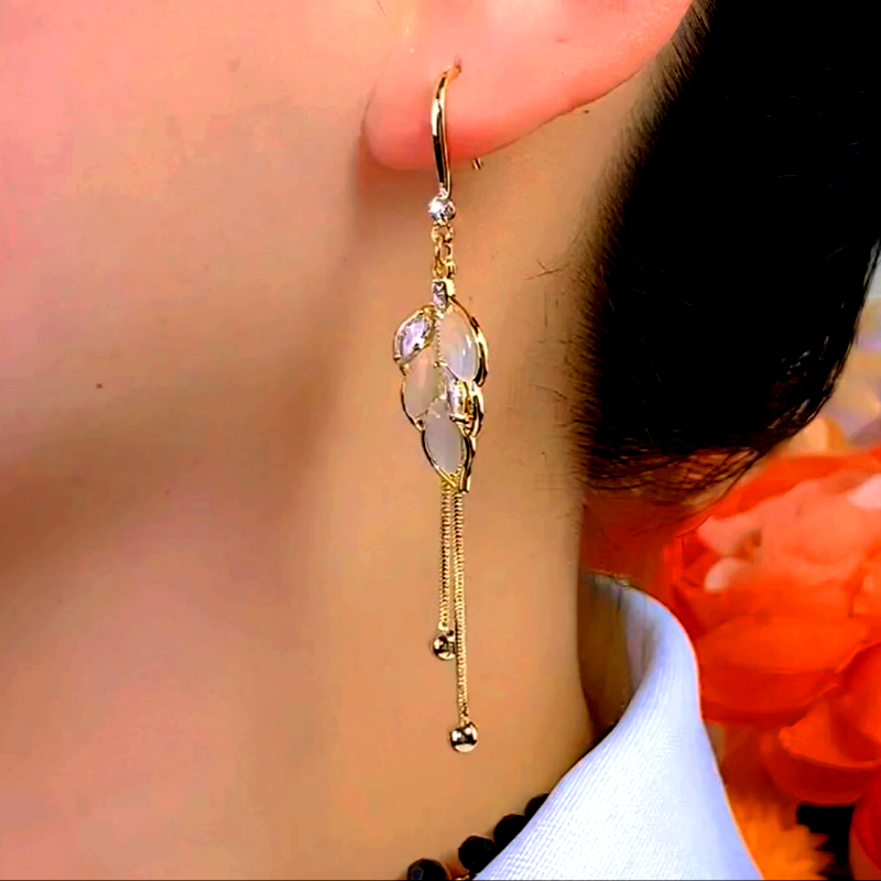 14K Gold-Plated Elegant Zircon Leaf Earrings