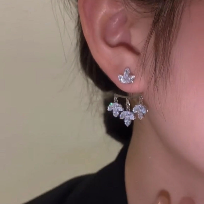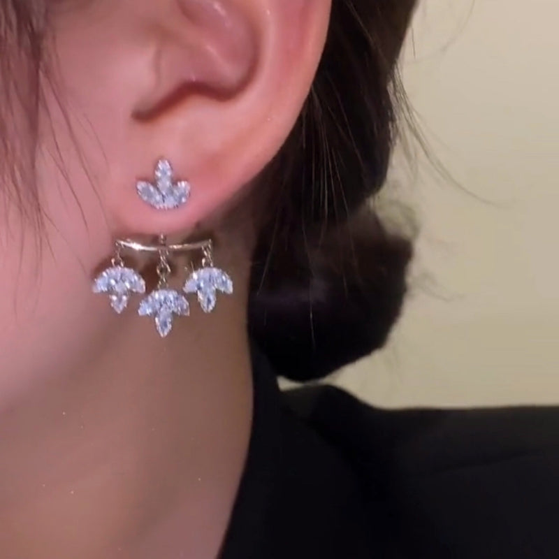 14K Gold-Plated Elegant Zircon Maple Leaf Earrings