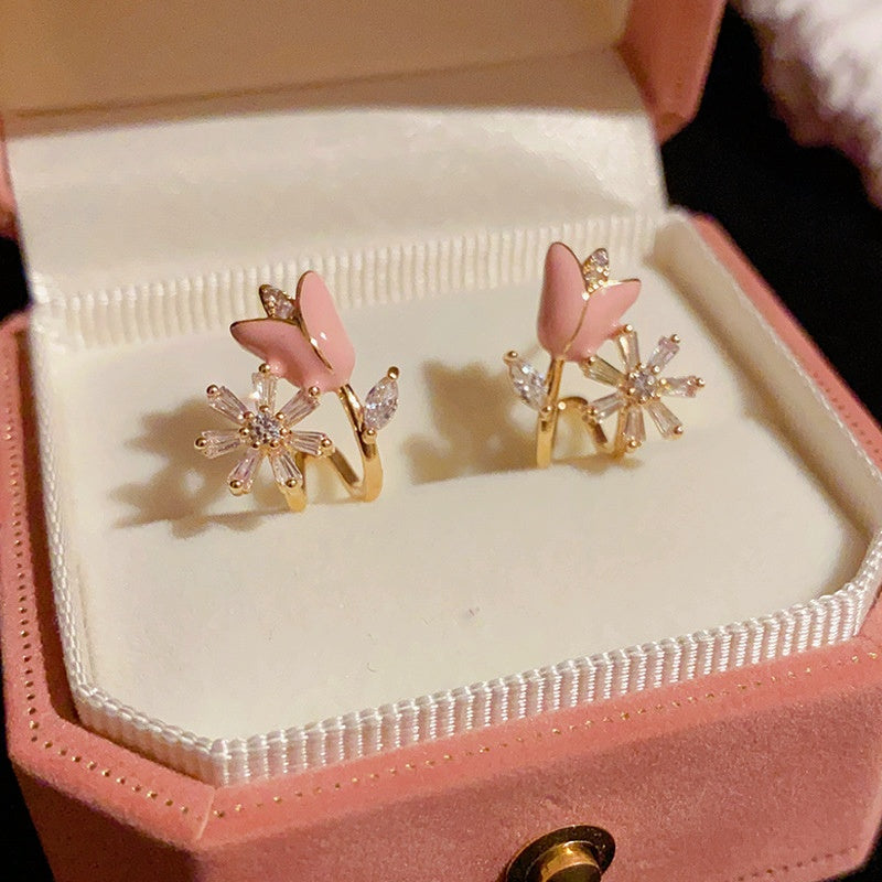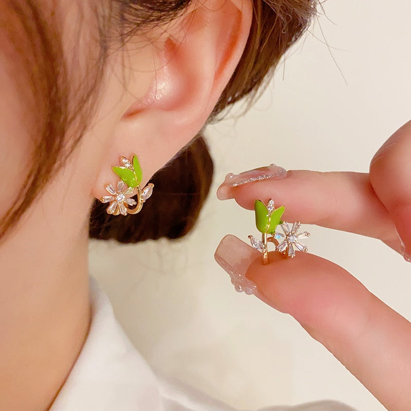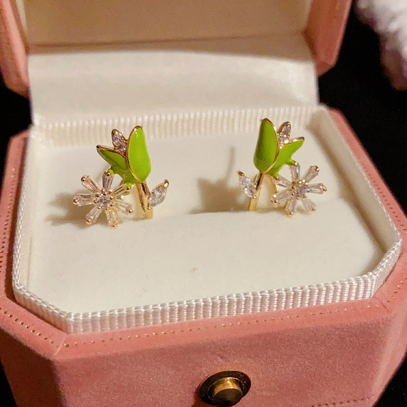 14K Gold-Plated Elegant Zircon Oil Drop Flower Stud Earrings