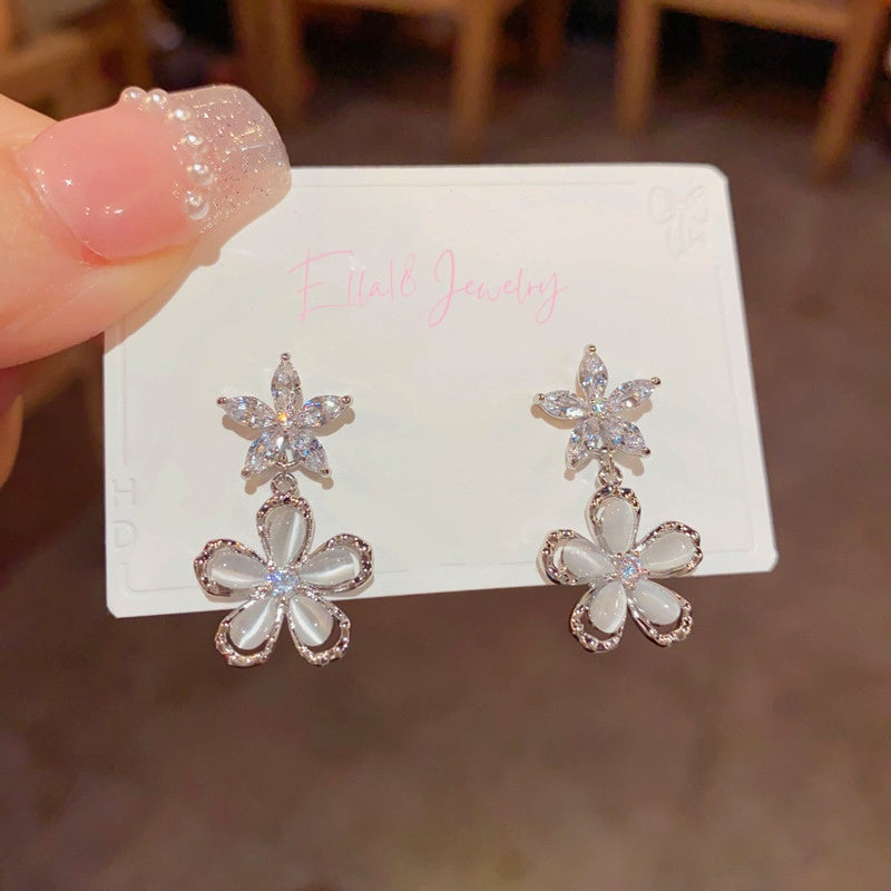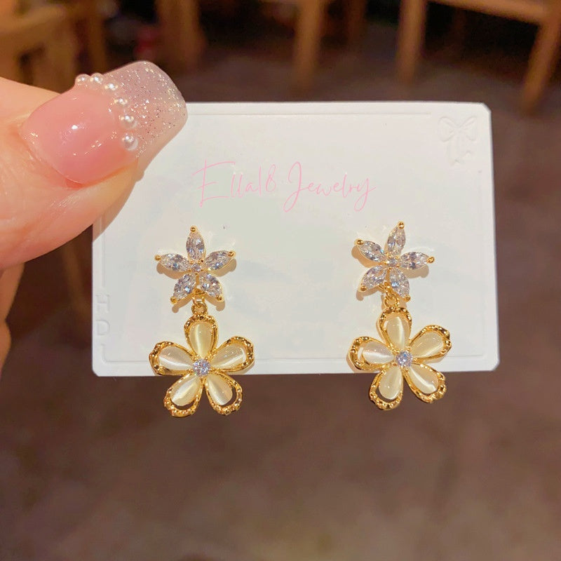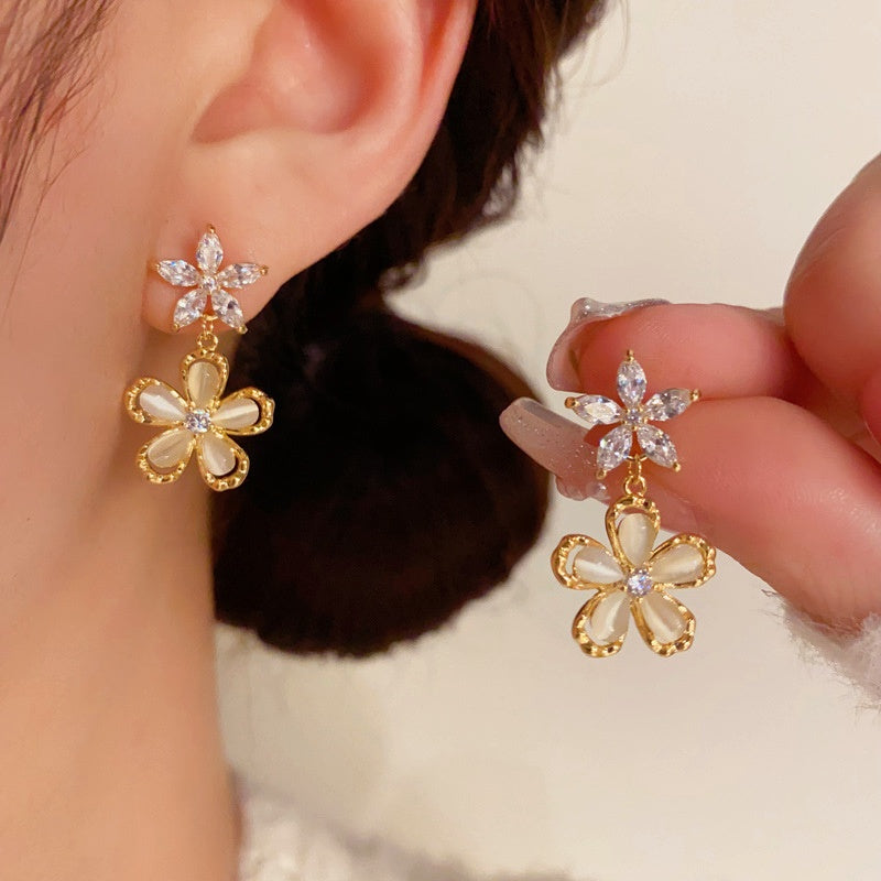 14K Gold-Plated Elegant Zircon Opal Flower Earrings