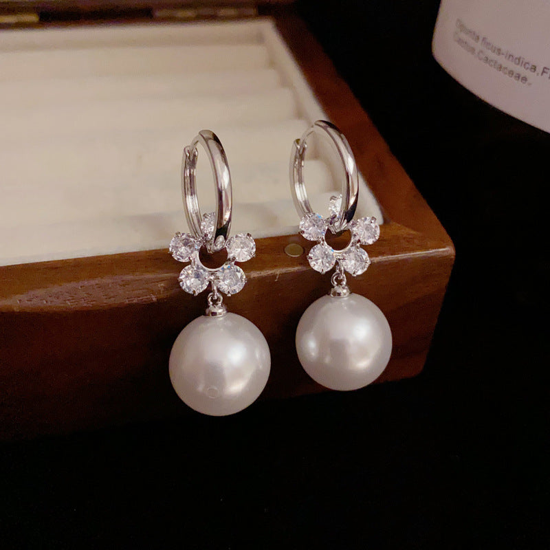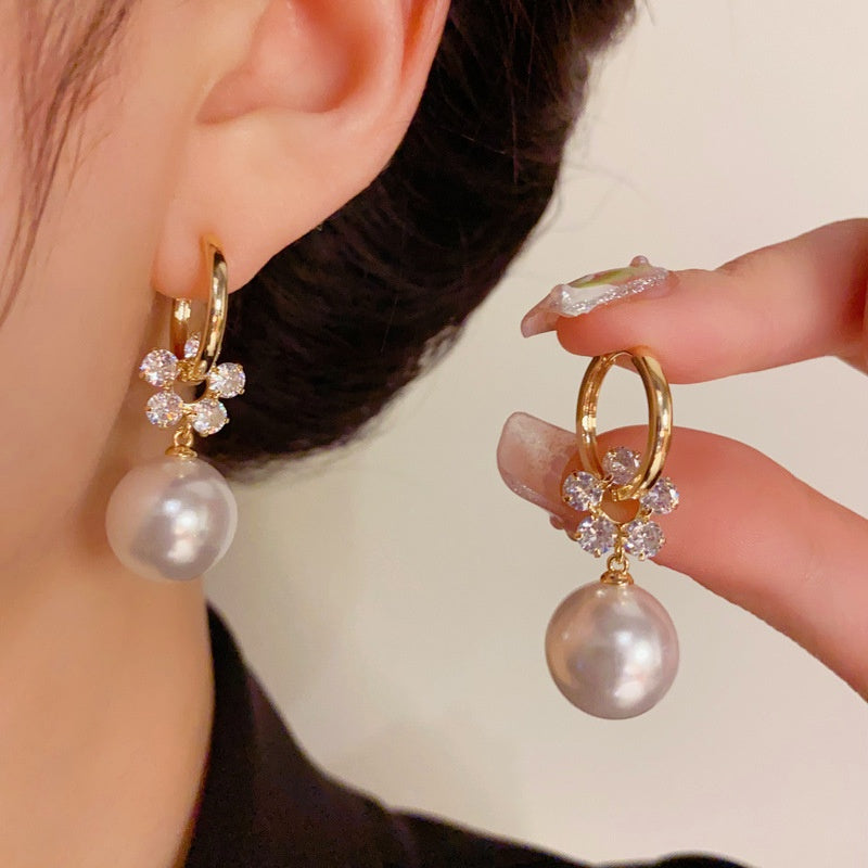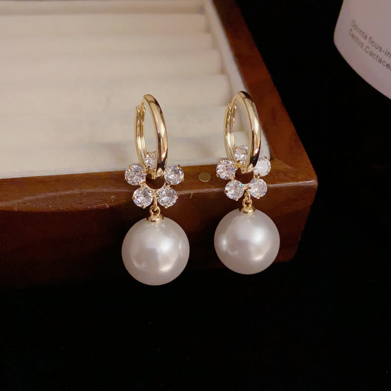 14K Gold-Plated Elegant Zircon Pearl Flower Earrings