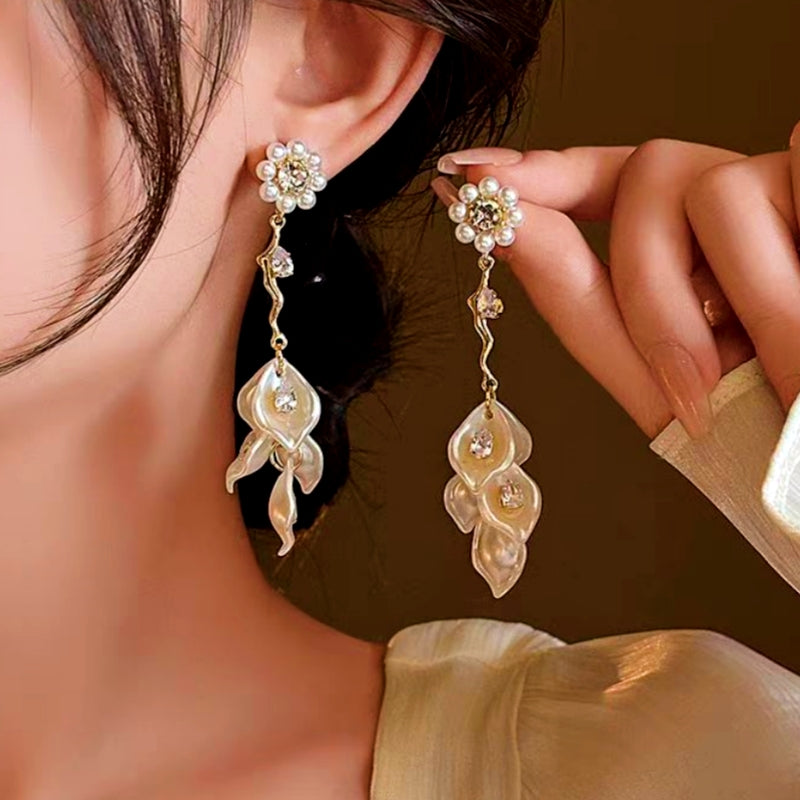 14K Gold-Plated Elegant Zircon Pearl Shell Earrings