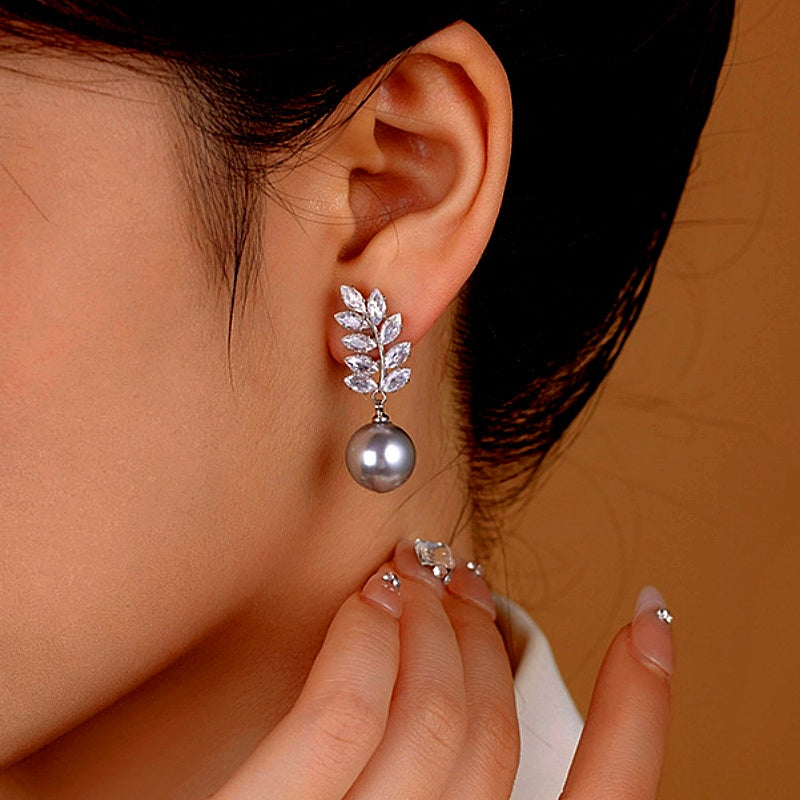 14K Gold-Plated Elegant Zircon Pearl Wheat Earrings