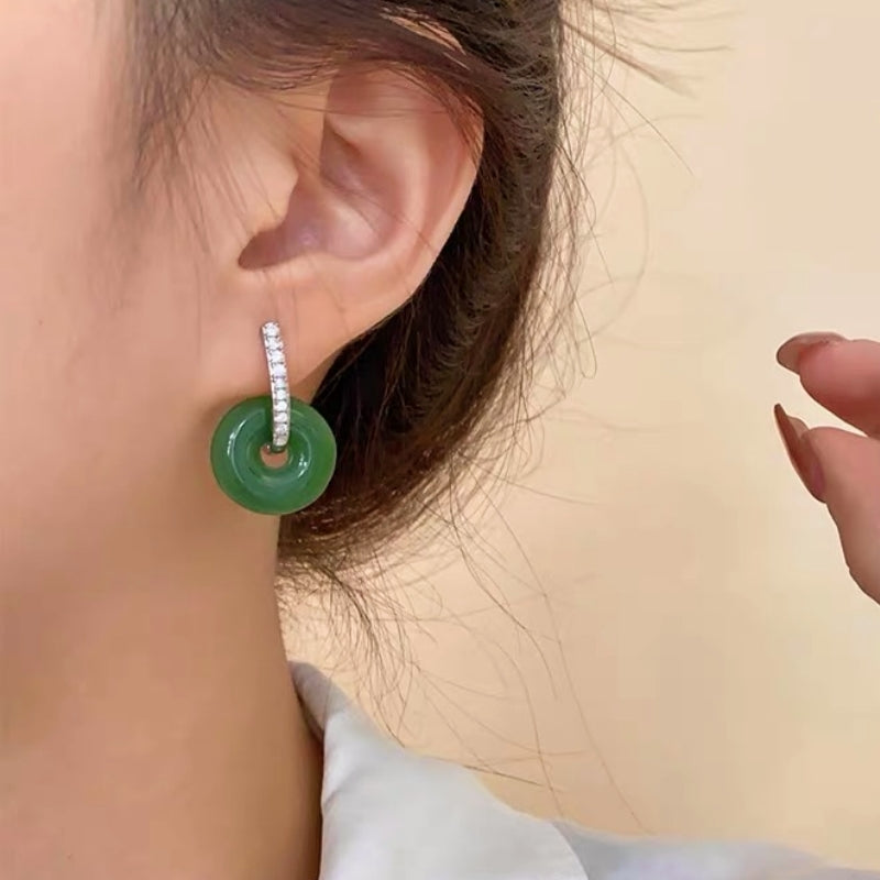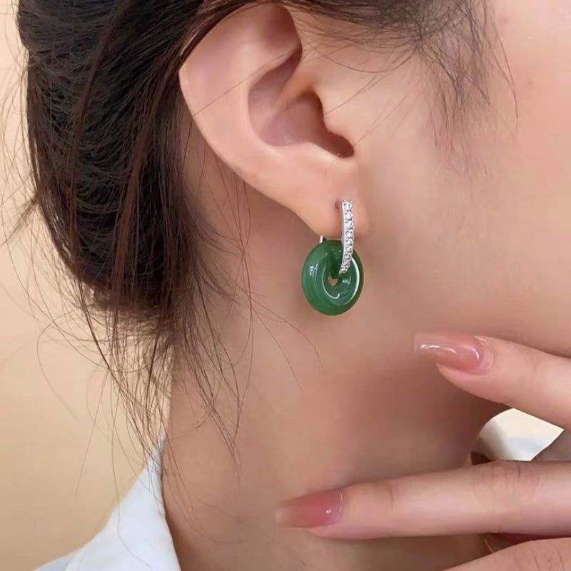 14K Gold-Plated Elegant Zircon Resin Green Jade Earrings