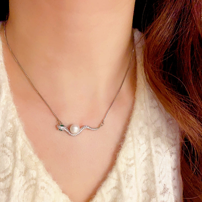 14K Gold-Plated Elegant Zircon Ripple Pearl Snake Necklace