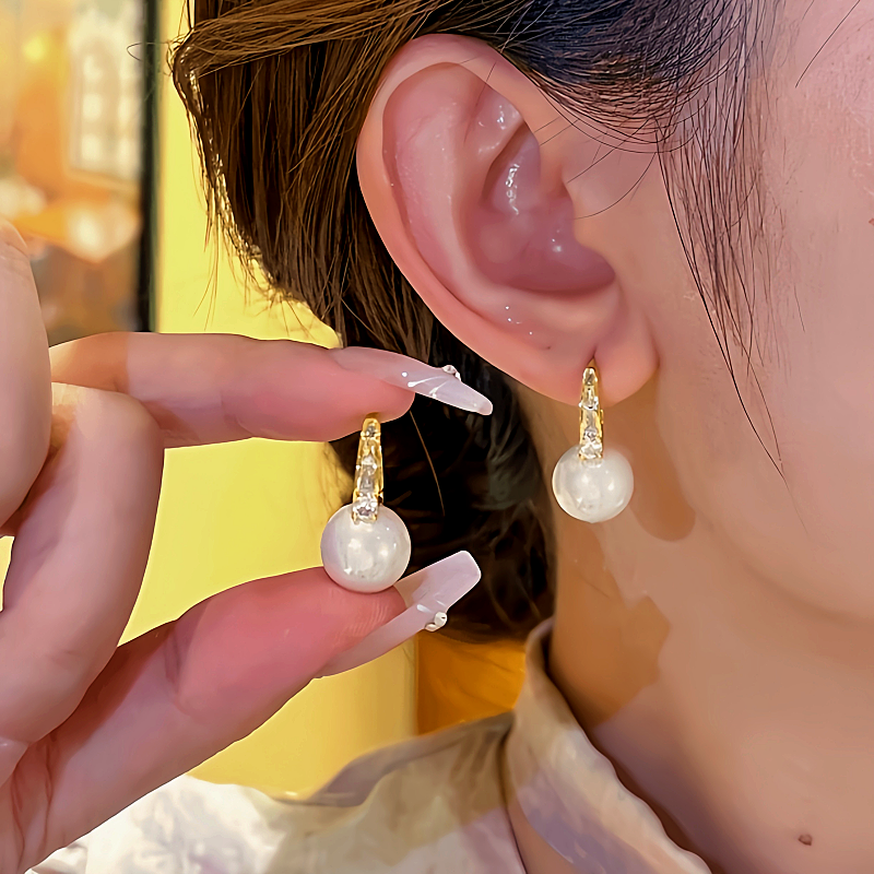 14K Gold-plated Elegant Zircon Shell Pearl Earrings