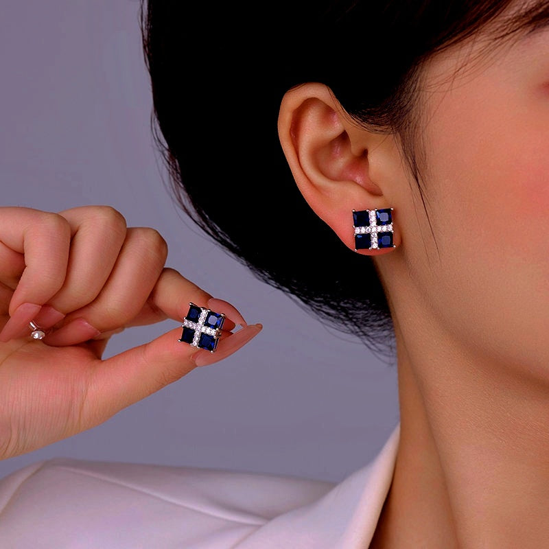 14K Gold-Plated Elegant Zircon Square Earrings