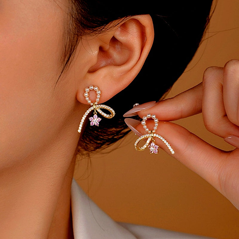 14K Gold-Plated Elegant Zircon Star Irregular Pearl Earrings