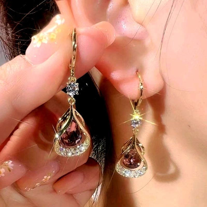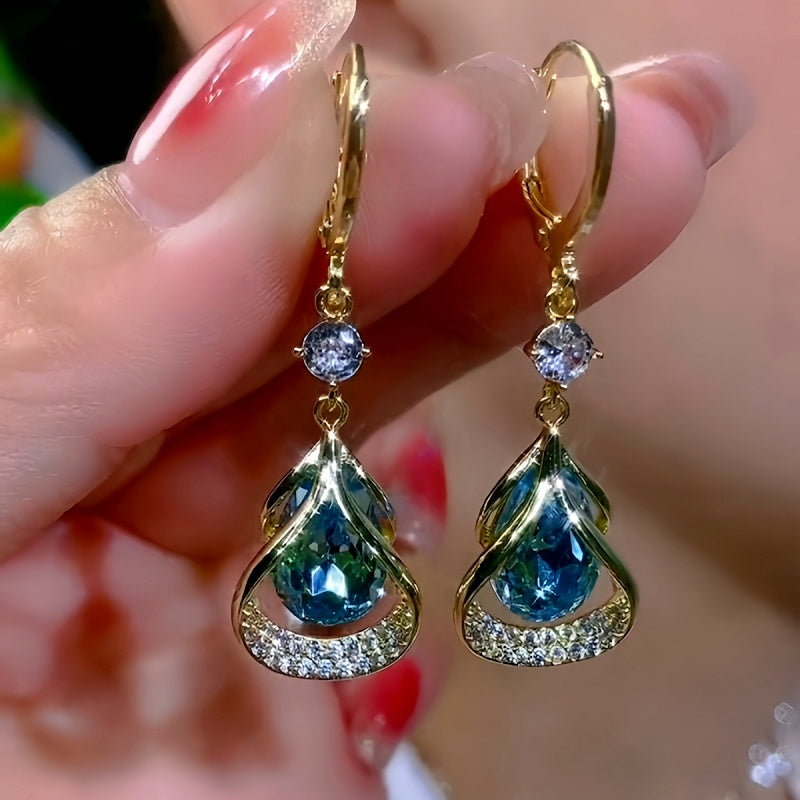 14K Gold-Plated Elegant Zircon Stone Water Drop Earrings