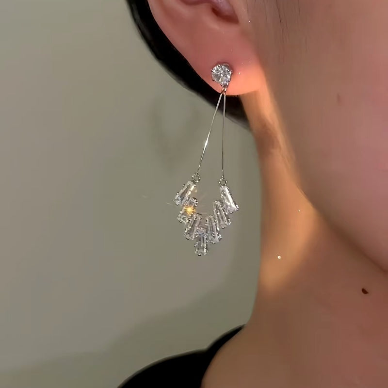 14K Gold-plated Elegant Zircon Tassel Earrings
