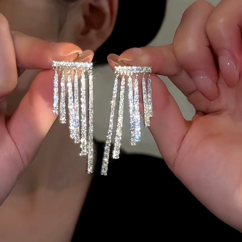 14K Gold-Plated Elegant Zircon Tassel Earrings