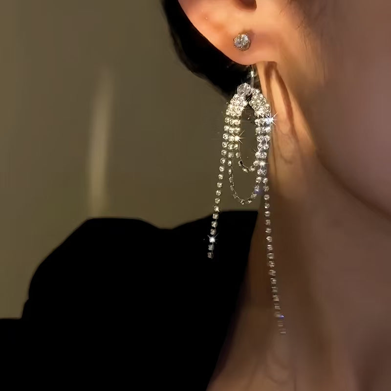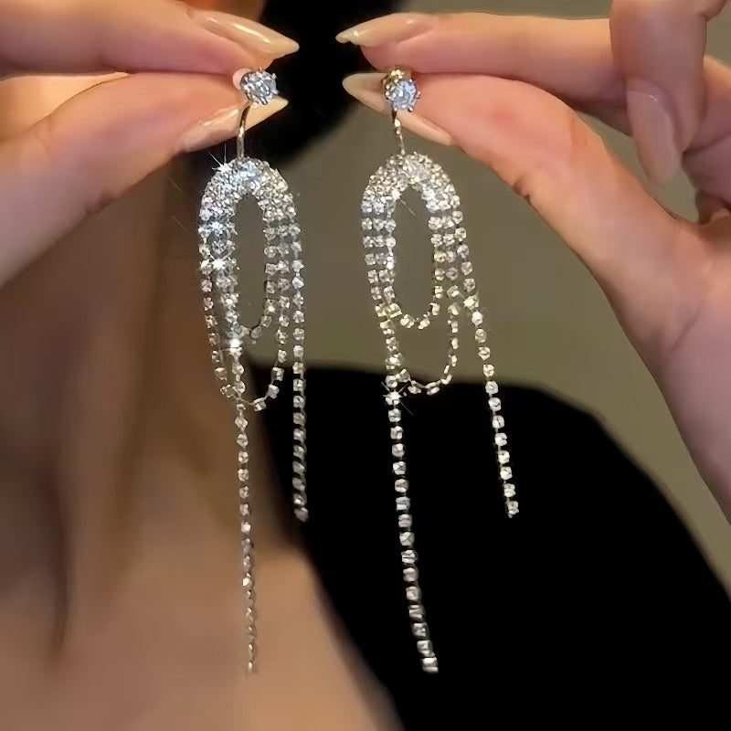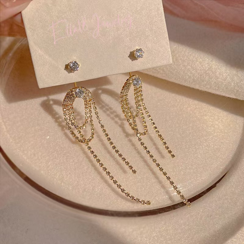 14K Gold-Plated Elegant Zircon Tassel Earrings