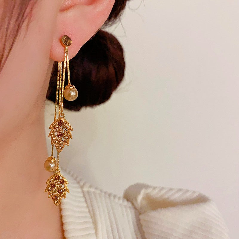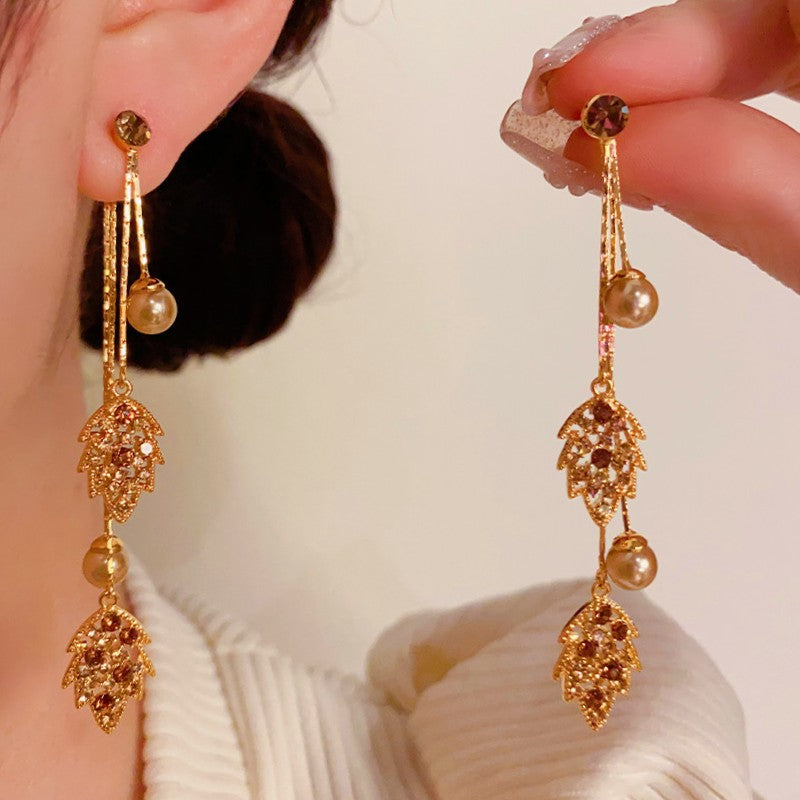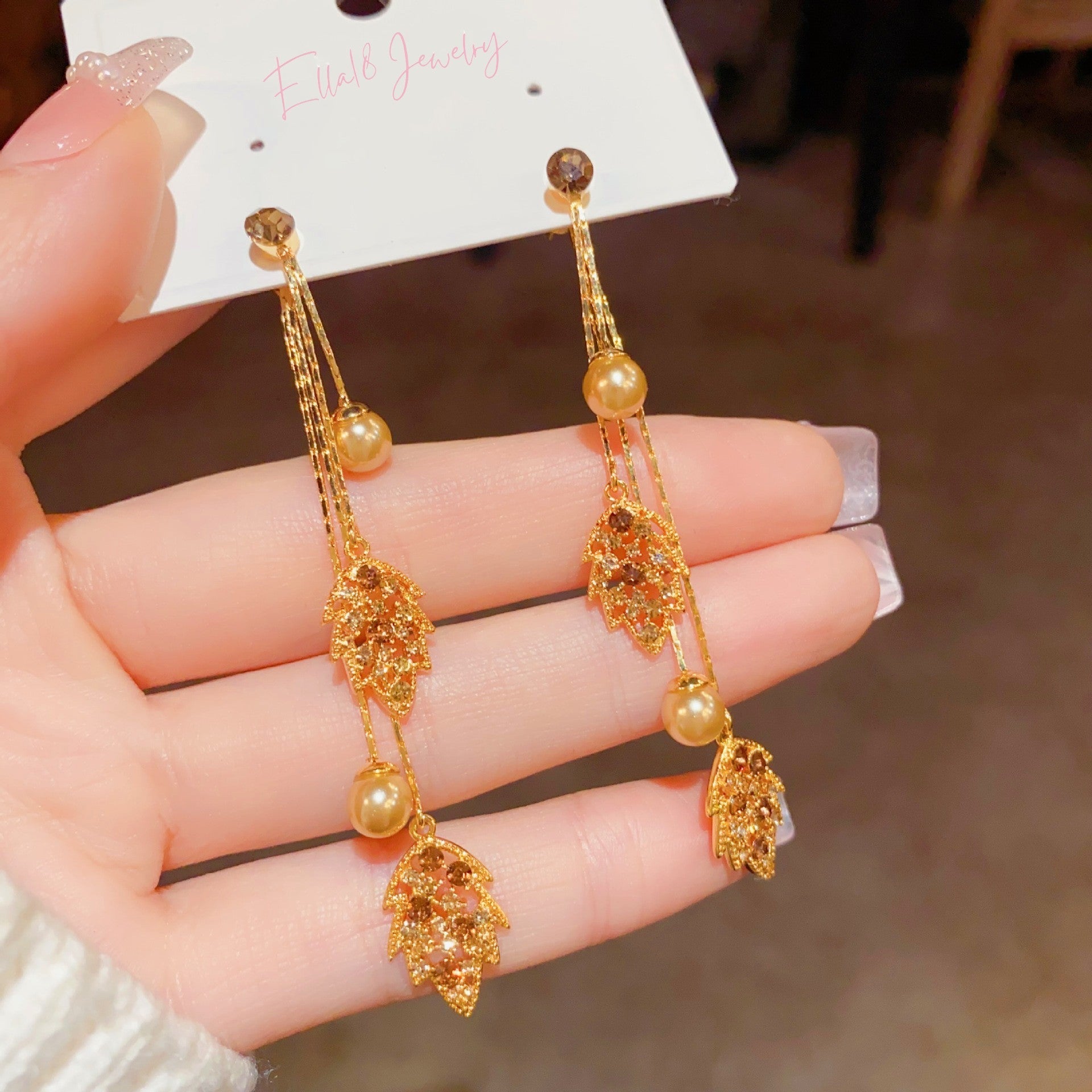 14K Gold-plated Exquisite Brown Zircon Leaf Earrings