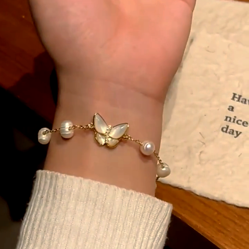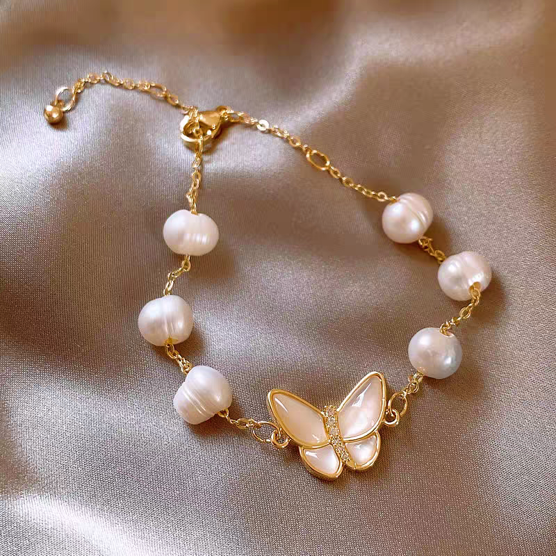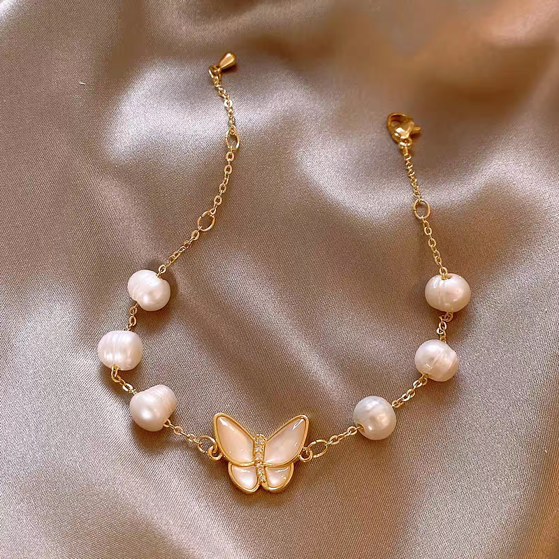 14K Gold-plated Exquisite Butterfly Pearl Bracelets