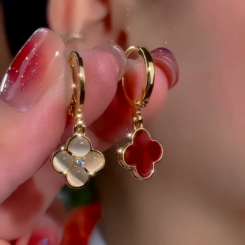 14K Gold-Plated Exquisite Cat's Eye Flower Earrings