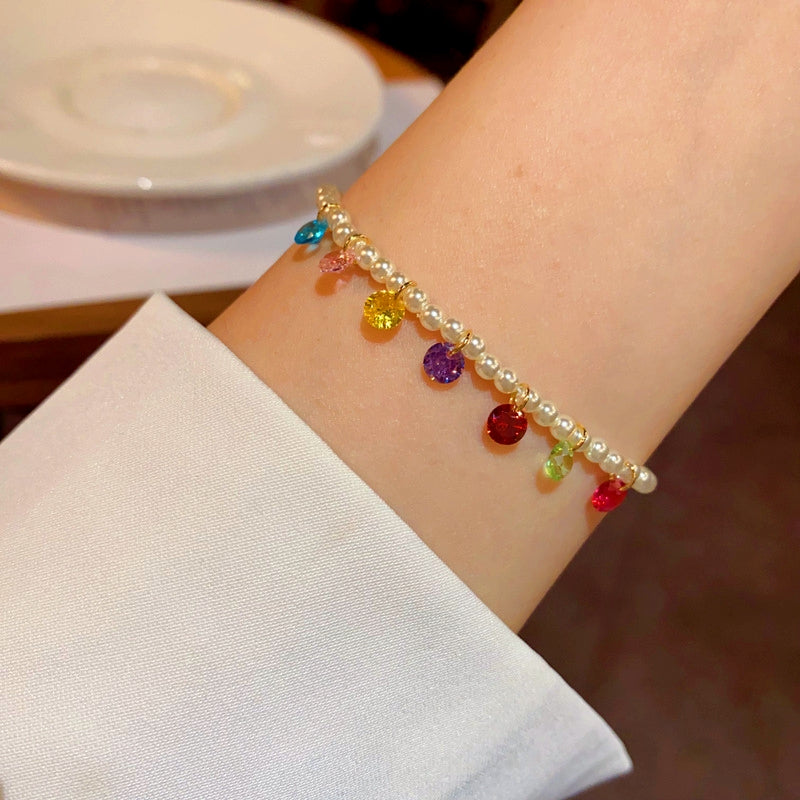 14K Gold-plated Exquisite Colorful Zircon Pearl Bracelets