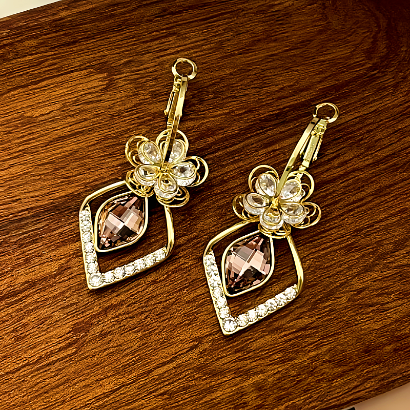 14K Gold-Plated Exquisite Diamond Flower Crystal Earrings