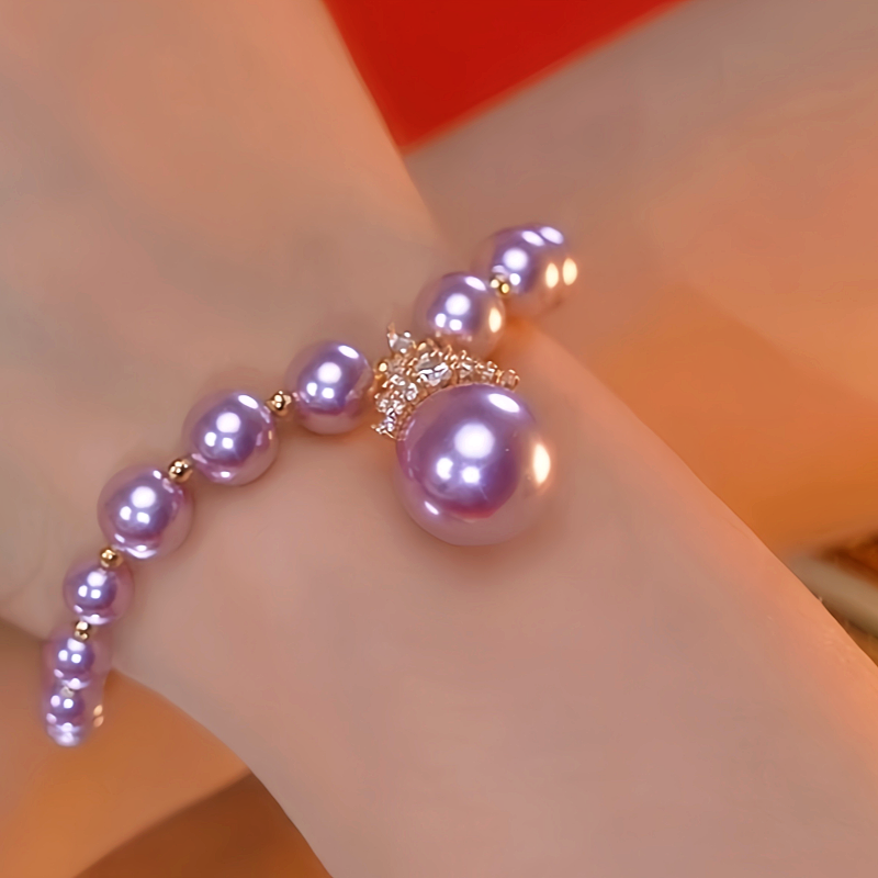 14K Gold-plated Exquisite Diamond Purple Pearl Bracelet