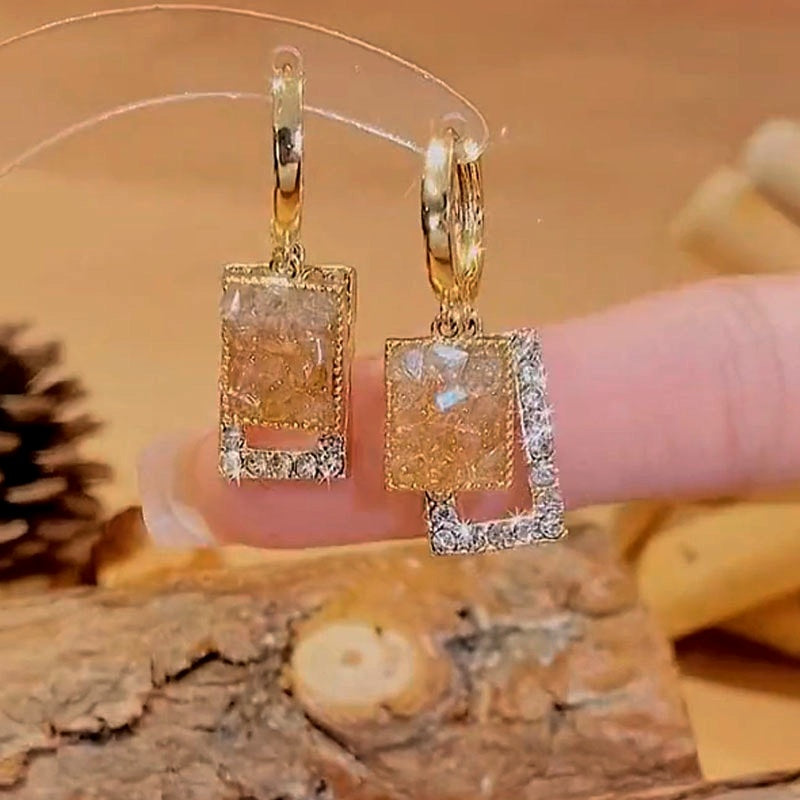 14k Gold-Plated Exquisite Diamond Square Earrings