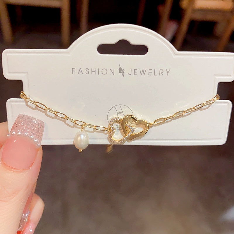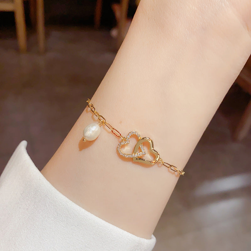14K Gold-plated Exquisite Double Love Heart Pearl Bracelets