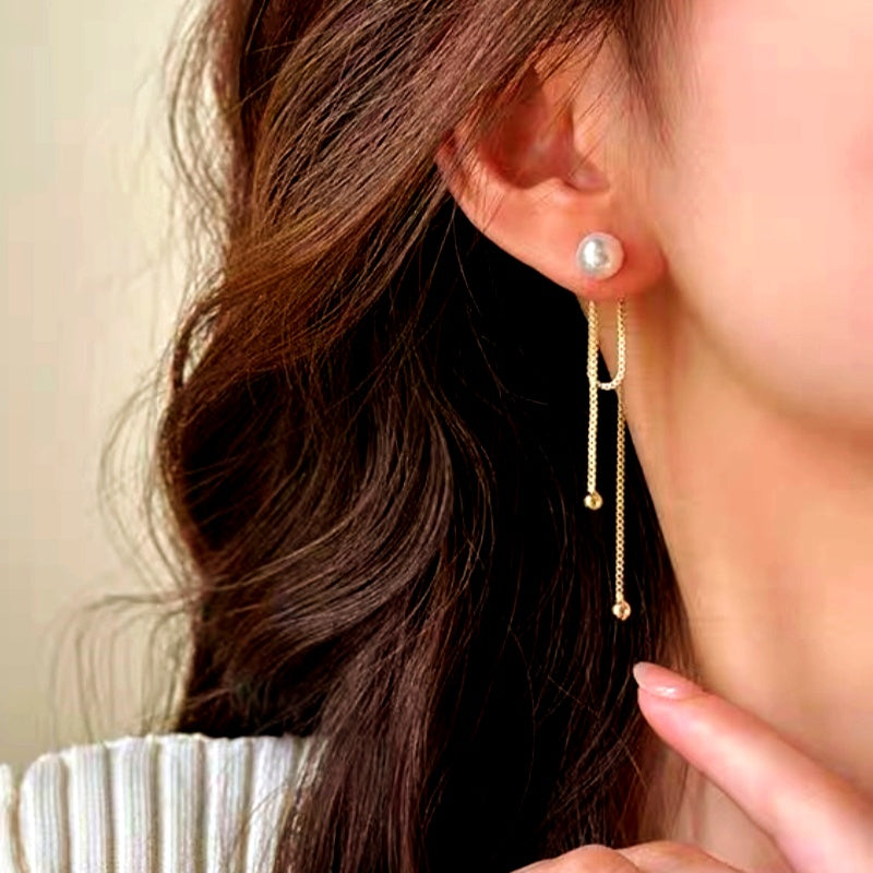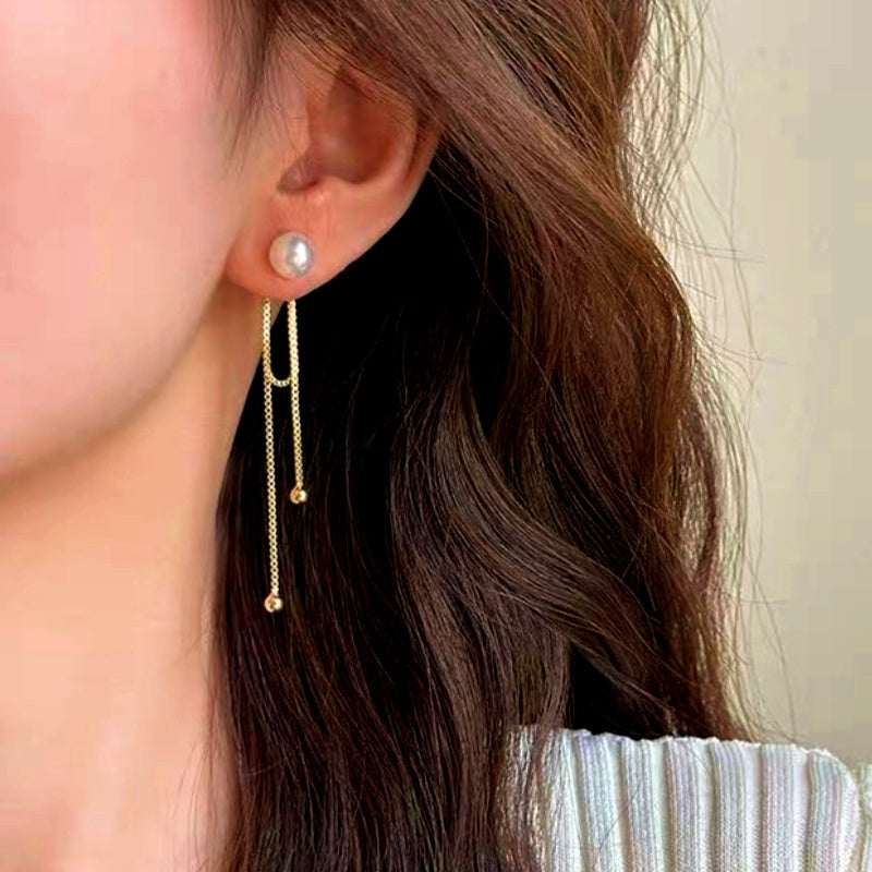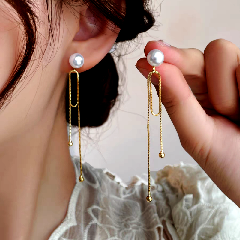 14K Gold-Plated Exquisite Long Pearl Tassel Earrings