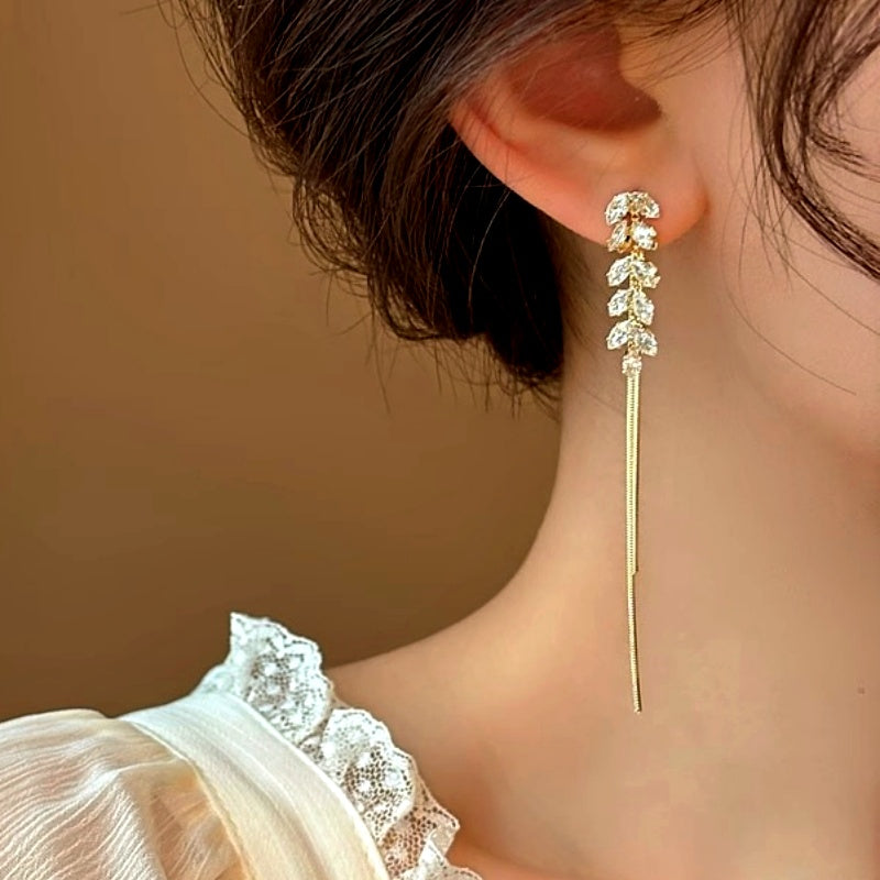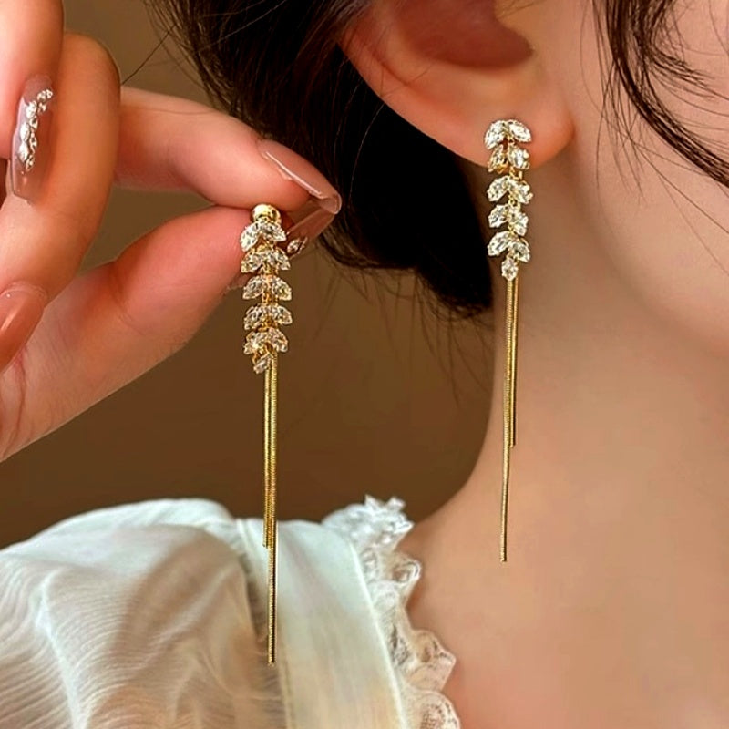 14K Gold-Plated Exquisite Long Wheat Tassel Earrings