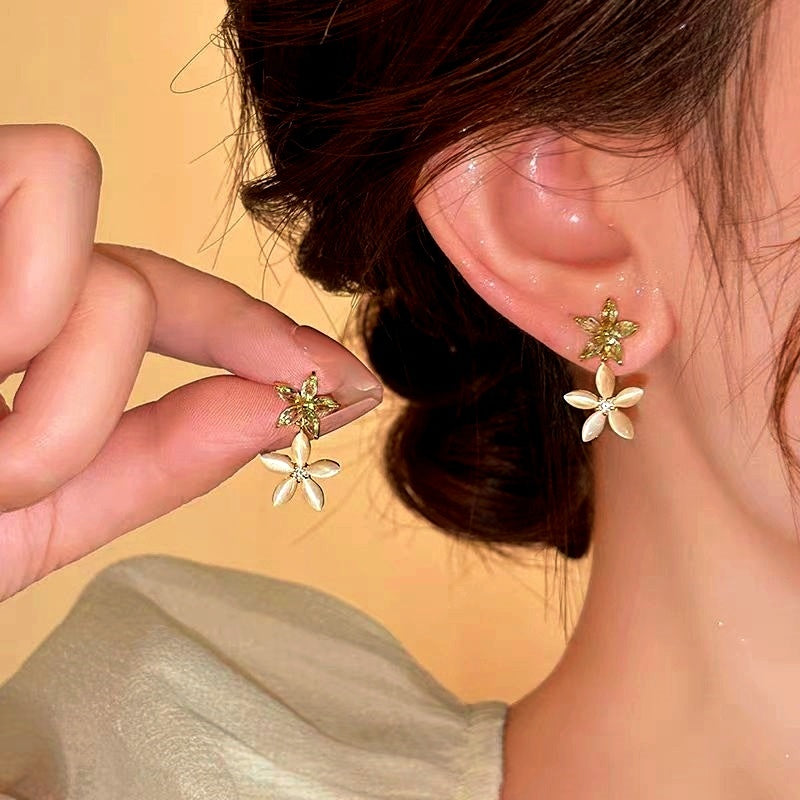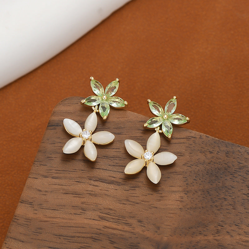 14K Gold-Plated Exquisite Opal Petal Flower Earrings