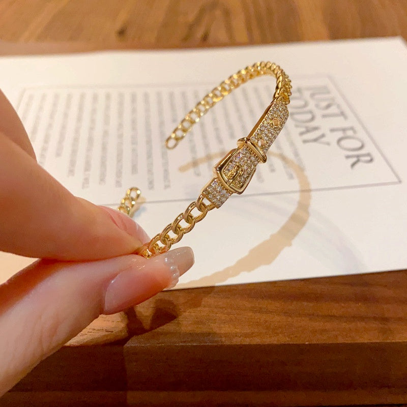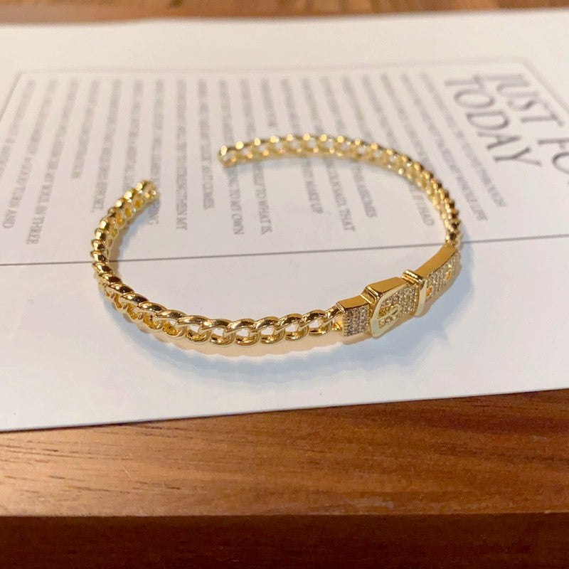 14K Gold-plated Exquisite Zircon Belt Buckle Hollow Bracelets