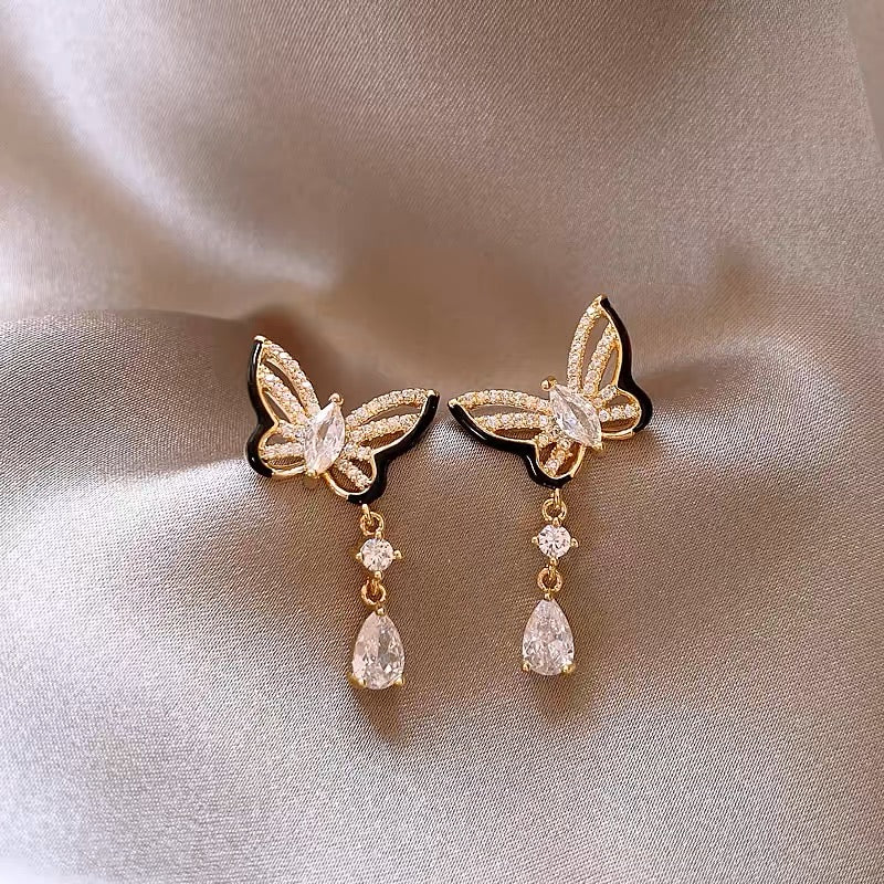 14K Gold-Plated Exquisite Zircon Butterfly Earrings