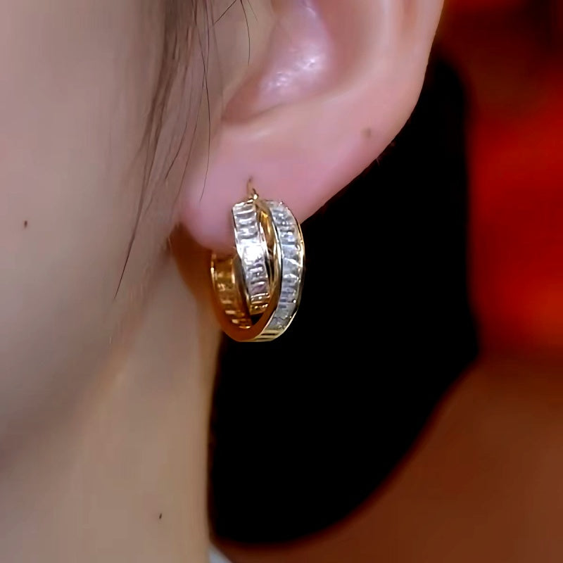 14K Gold-Plated Exquisite Zircon Double-Layer Earrings