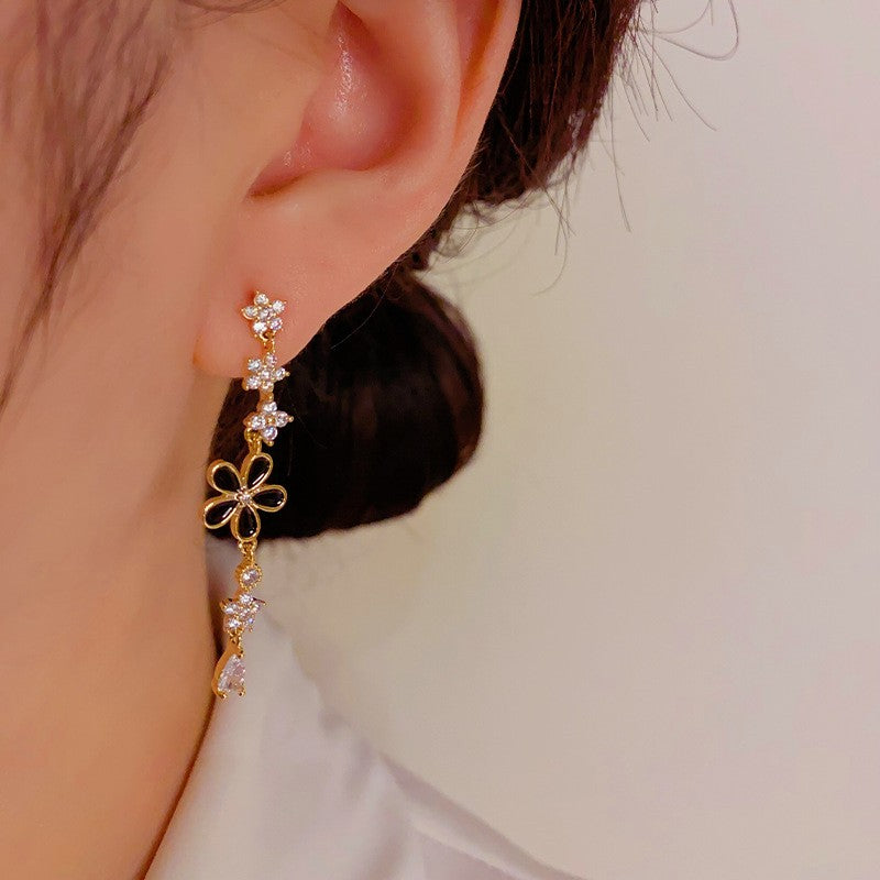 14K Gold-plated Exquisite Zircon Flower Earrings