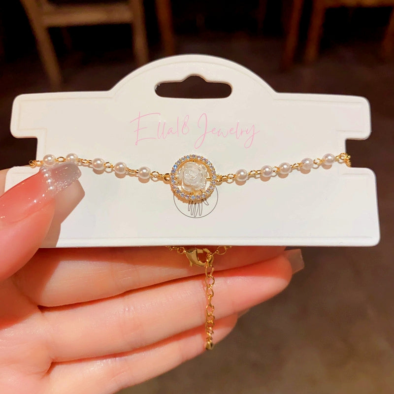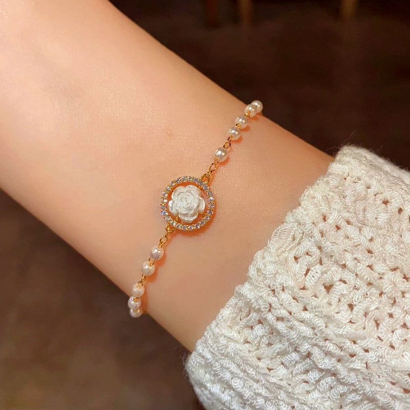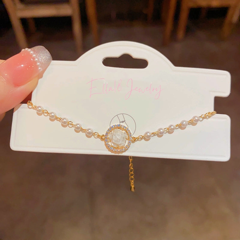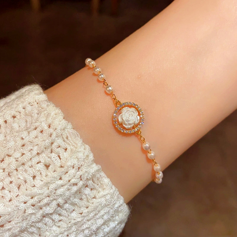 14K Gold-plated Exquisite Zircon Flower Hoop Pearl Adjustable Bracelets