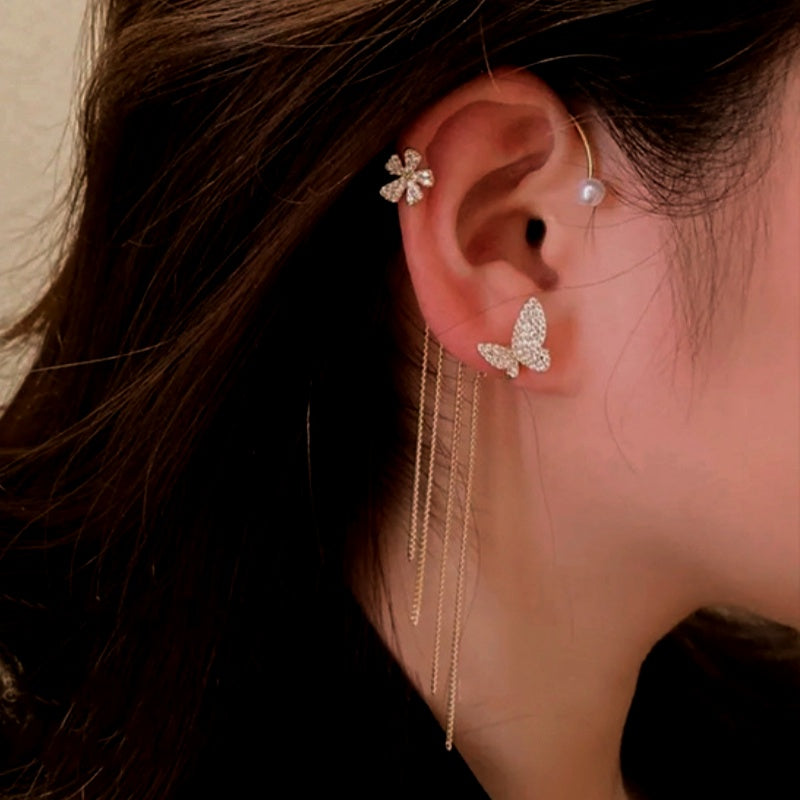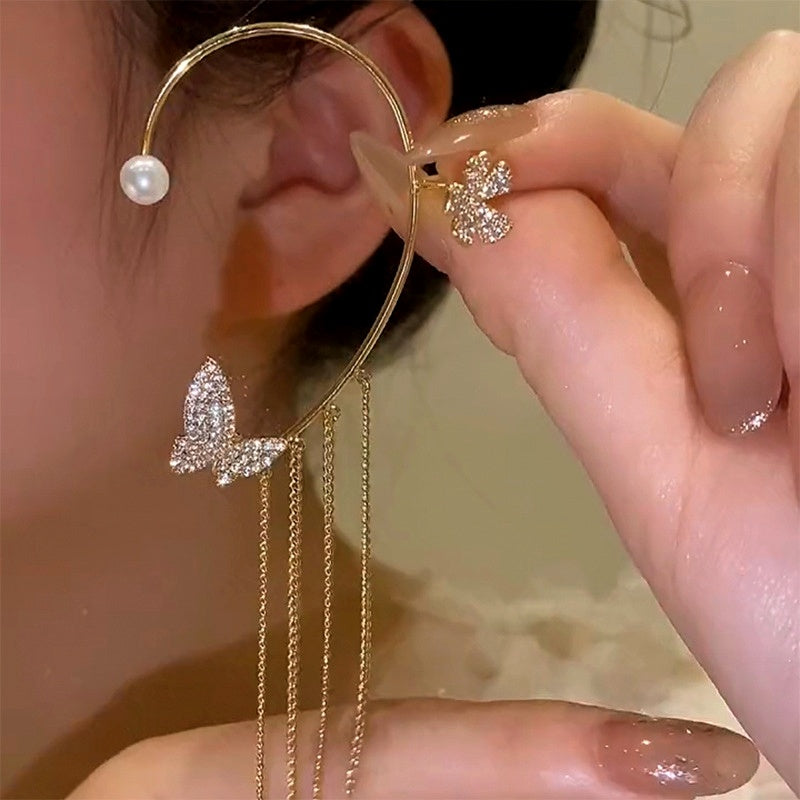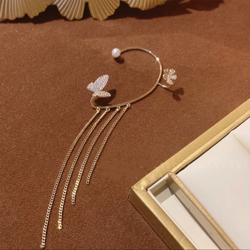 14K Gold-Plated Fairy Bow Tassel Ear Cuffs ( 1 Pair )