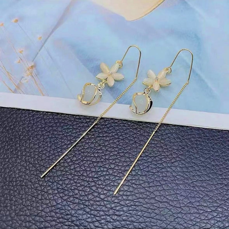 14K Gold-Plated Fairy Flower Good Moon Threader Earrings