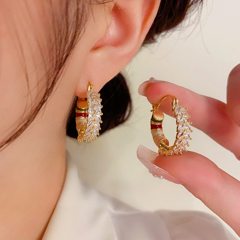 14K Gold-plated Fashionable Colorful Zircon Hoop Earrings