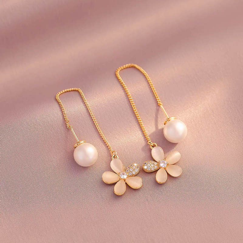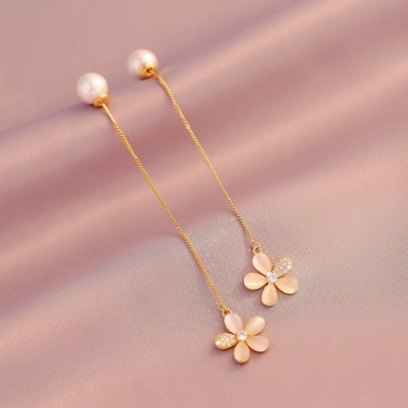 Made of Alloy, with a 14k gold layer on it, which means it will last longer (at least 3 months).