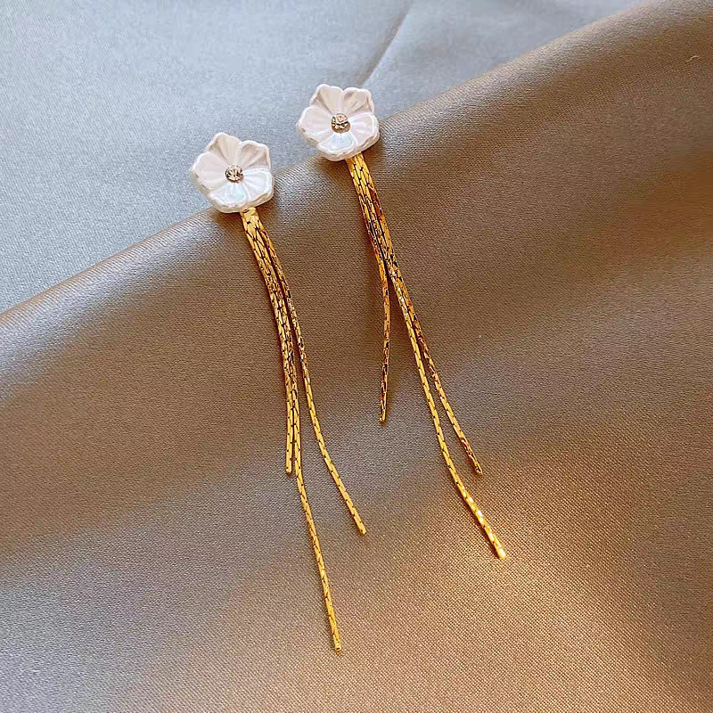 Made of Copper, with a 14k gold layer on it, which means it will last longer (at least 3 months).