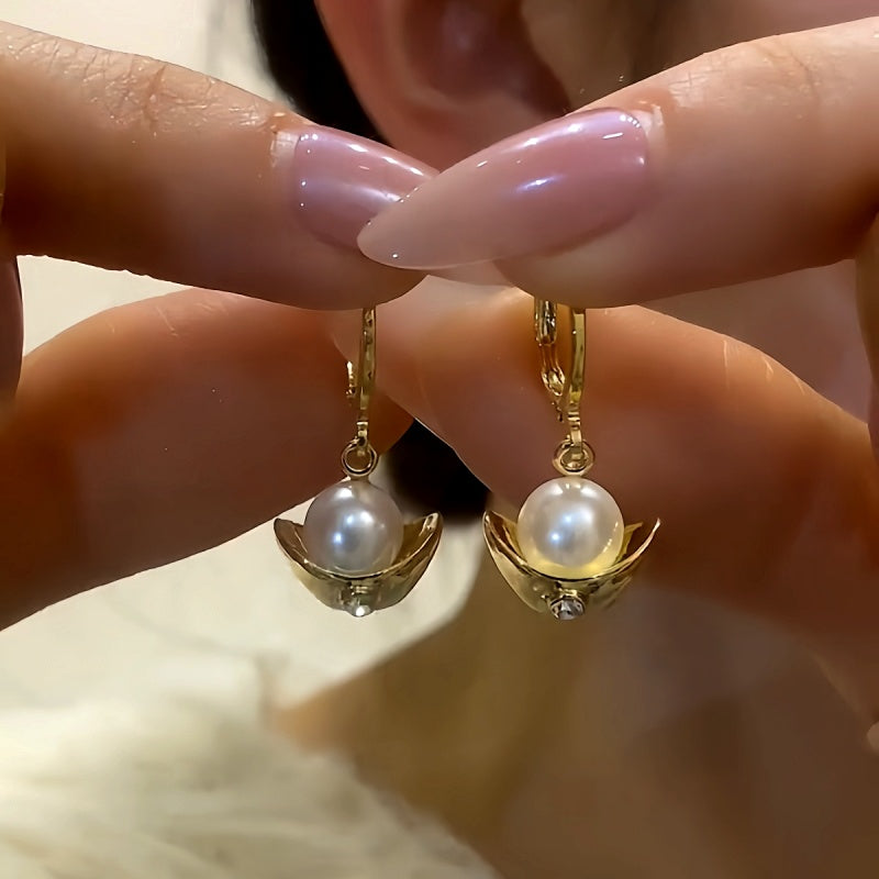 14K Gold-Plated Fortune-Bringing Pearl Ingot Earrings