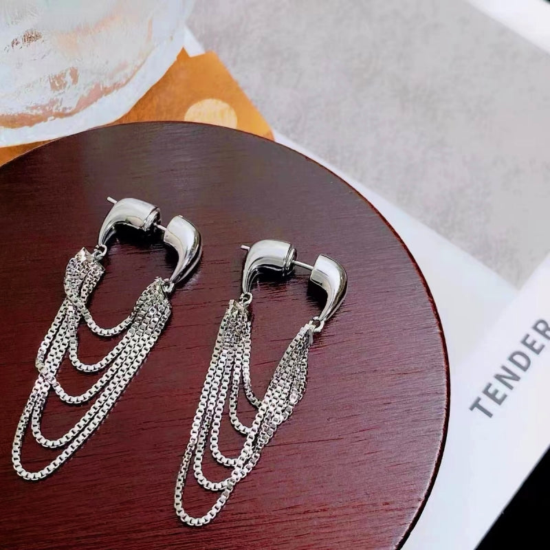 14K Gold-plated Front And Back Chain Tassel Earrings