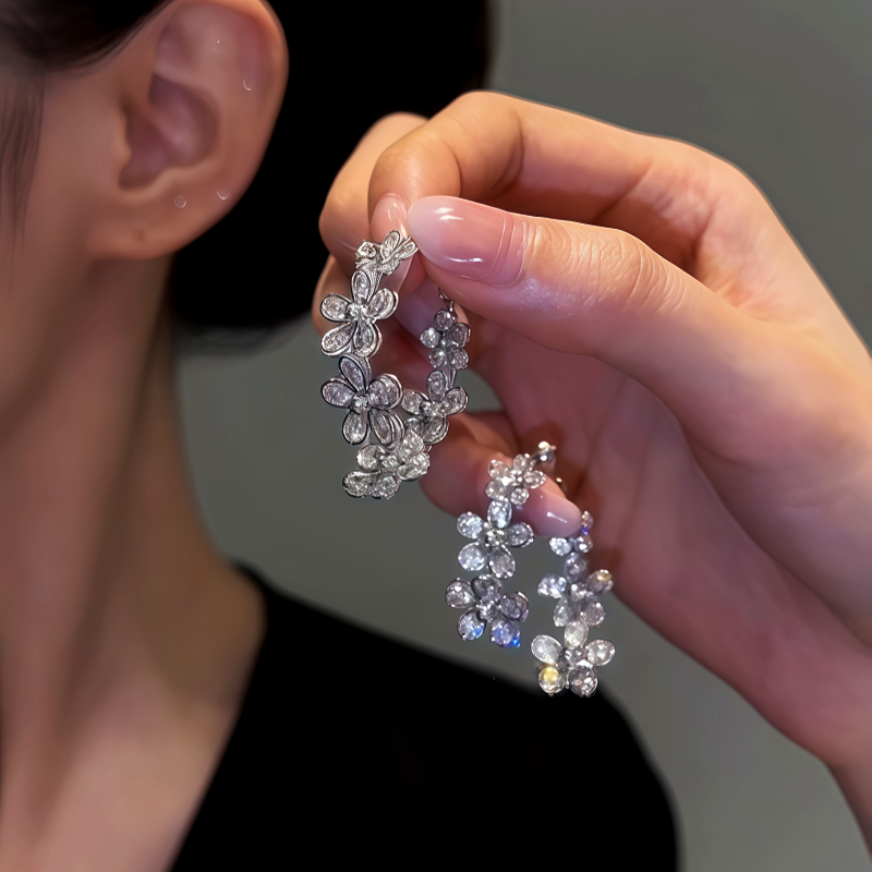 14K Gold-Plated Front And Back Zircon Flower Earrings
