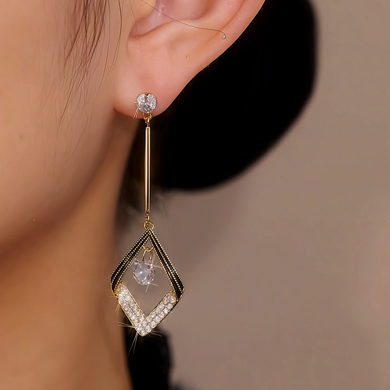 14K Gold Plated Geometric Rhombus Crystal Earrings