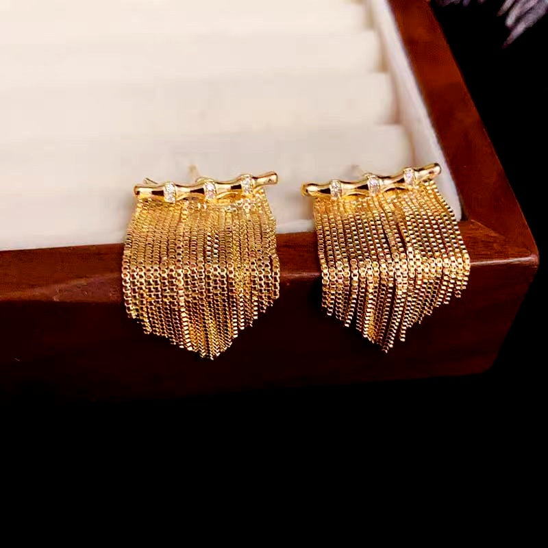 14K Gold-Plated Gold Bamboo Drop Earrings