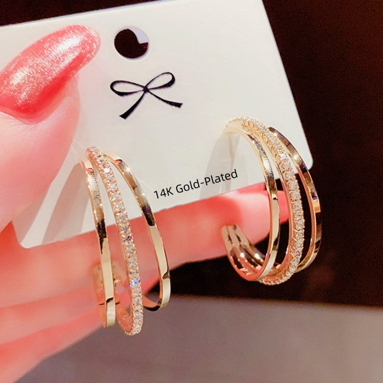 14K Gold-plated Gold Plated Three-Layer C Shaped Earrings