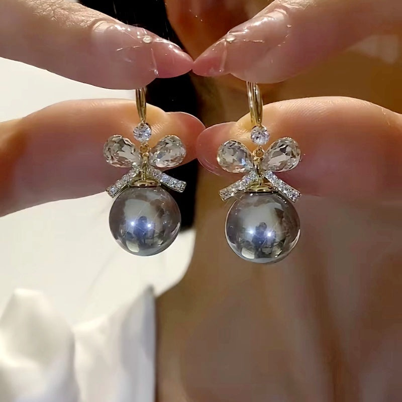 14K Gold-Plated Gray Pearl Bow Earrings