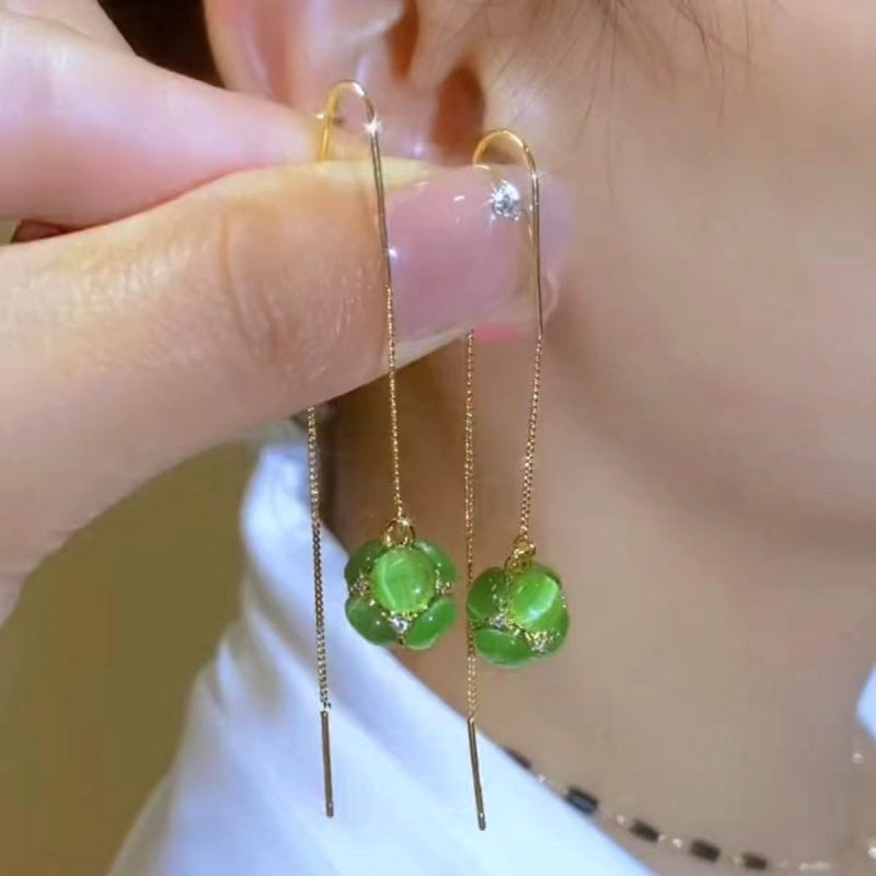 14K Gold-Plated Green Ball Threader Earrings