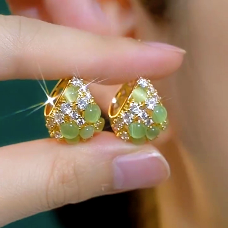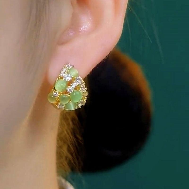 14K Gold-Plated Green Cat’s Eye Drop Earrings