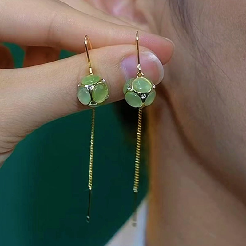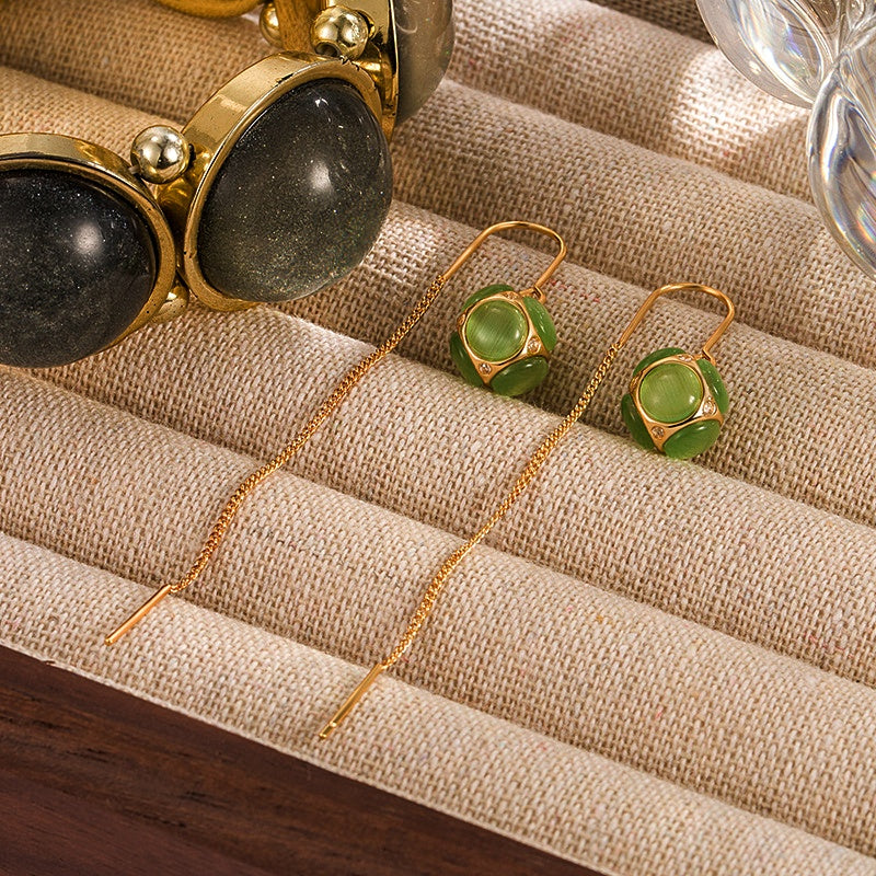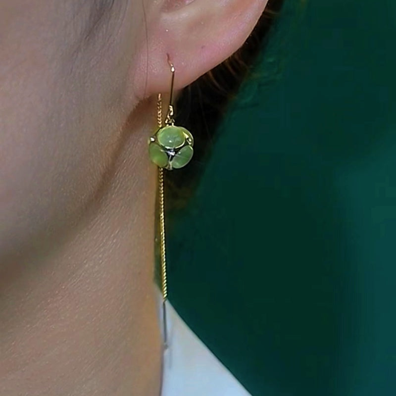 14K Gold-Plated Green Cat's Eye Hydrangea Threader Earrings