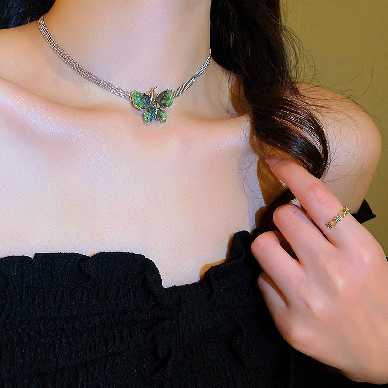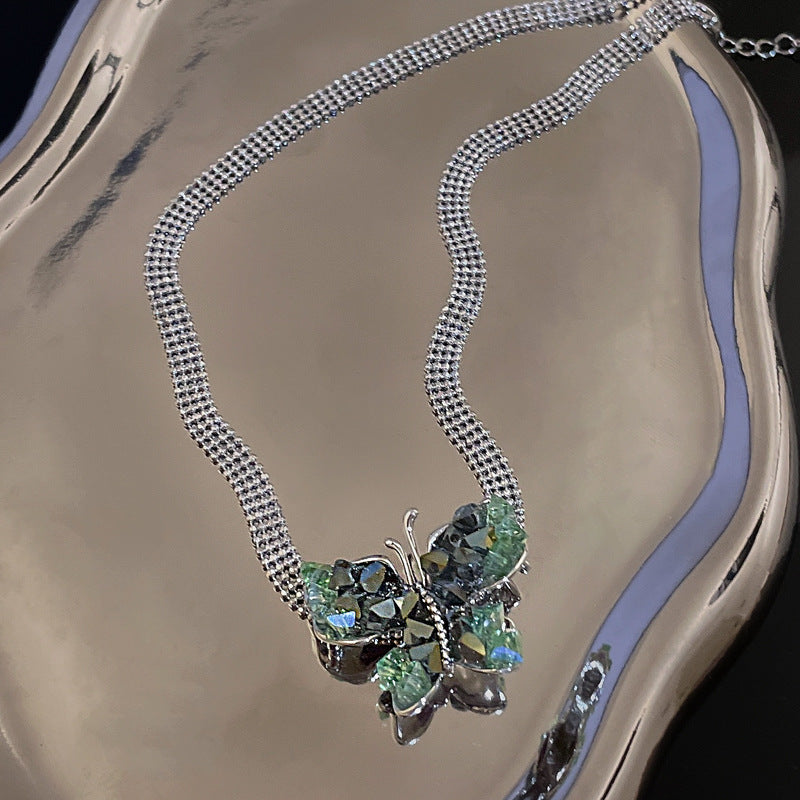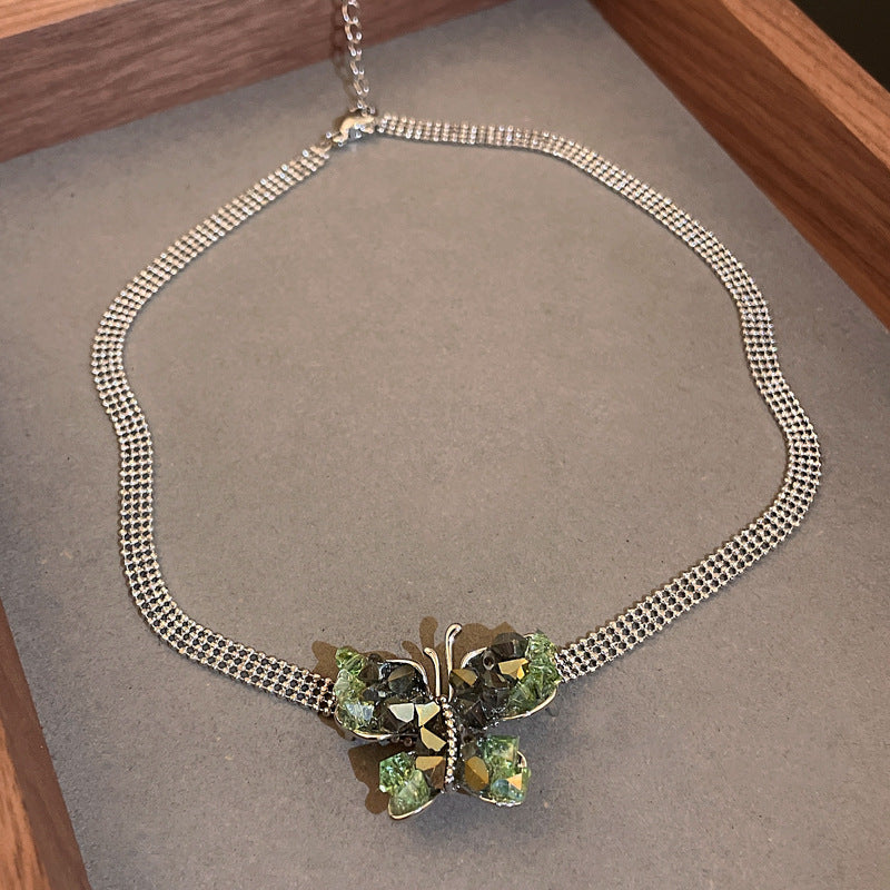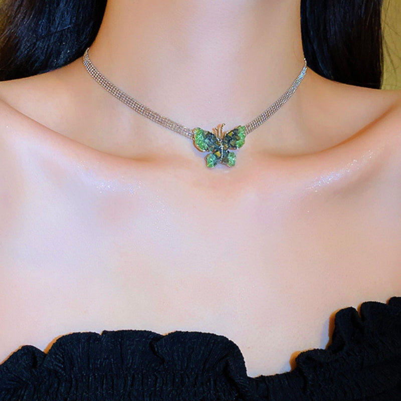 14K Gold Plated Green Crystal Butterfly Necklaces