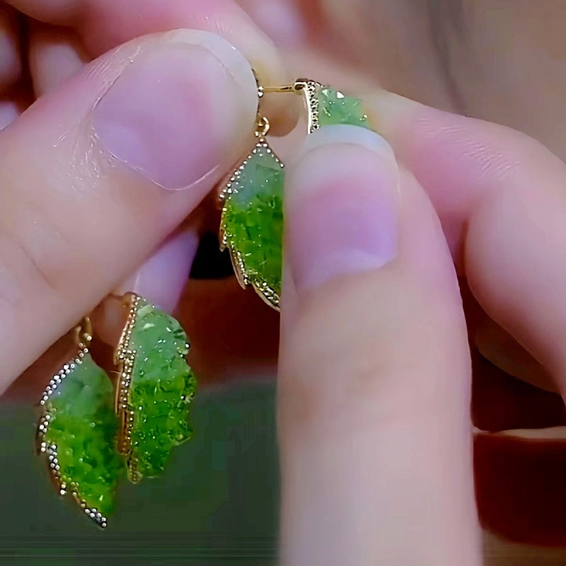 14K Gold-plated Green Diamond Crystal Leaf Earrings